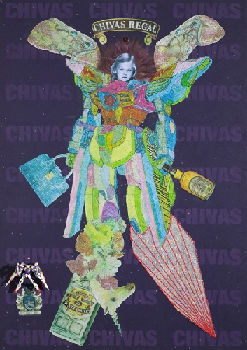 Peinture et collage sur toile, 200 x 140 cm (78.7 x 55.1 in.)